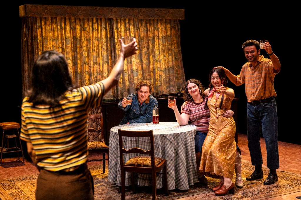 The play begins with five teenage friends, Deidre (Emma Diaz), Niamh (Mabel Li), Jimmy (Raj Labade), Mary (Adriadne Sgouros) and Conor (Adam Sollis), who are celebrating as Niamh moves to London to study medicine. This will be the last time that they are in a room all together but as they reminisce over more than a few drinks, it seems as though they’ll be back together soon enough and that the reunion is more of an inevitability than anything else.