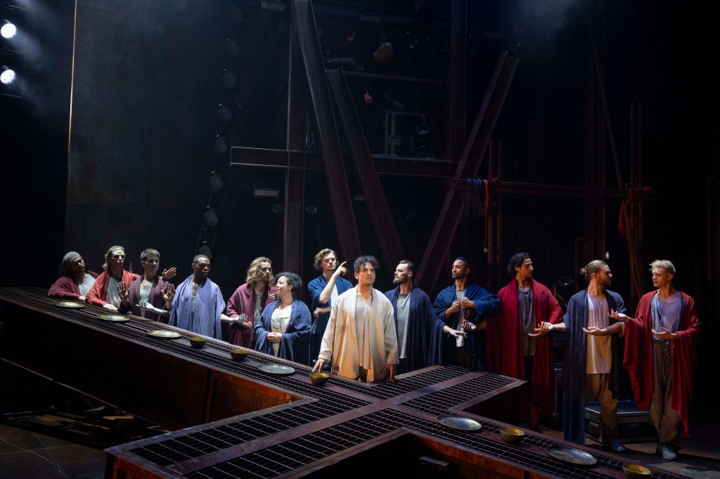 With such a history in this country and such a star-studded cast, this production had a serious reputation to live up to and from the outset, it did so, with a sterling rendition of “Heaven on our Minds” by King as Judas to kick off the show. Using the Regent’s Park Open Air Theatre’s staging, the production was brash and bold from the outset, with the fiery cross being the focal centrepiece of the set. The onstage band is a unique feature of this musical and was well-received on opening night, adding an intensity to the action.