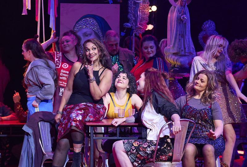 The most striking way that the production is reinvented is through the set design and costuming of Marg Horwell, who is truly visionary in her work on this production. The sets are bold and audacious, drawing audible gasps from the opening night audience as the curtain lifts to reveal the scene changes. Beyond the glitzy visuals, there is very much a sense that the sets follow the narrative, with a party-like atmosphere which very much resembles the set of a megamusical transforming into a claustrophobic alleyway where the titular character meets her demise. The costumes are also gorgeous throughout the entire show, adding to the ambiance on stage.