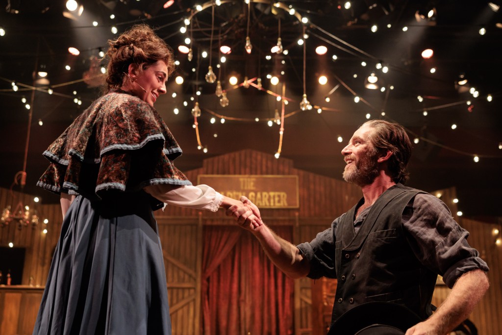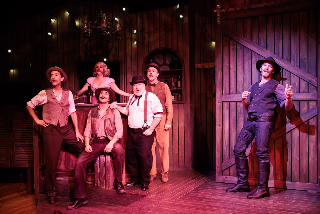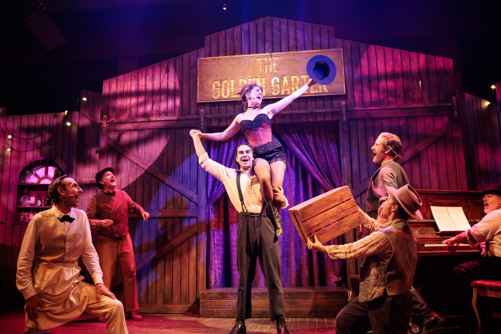 Calamity Jane is not your typical musical. Having originated at the Hayes Theatre, everything about it is very much in keeping with the Hayes’ ethos of whimsical, immersive pieces. Led by Director Richard Carroll, the audience was immersed from the very first moments of the production with the cast welcoming the audience into the old-time saloon.