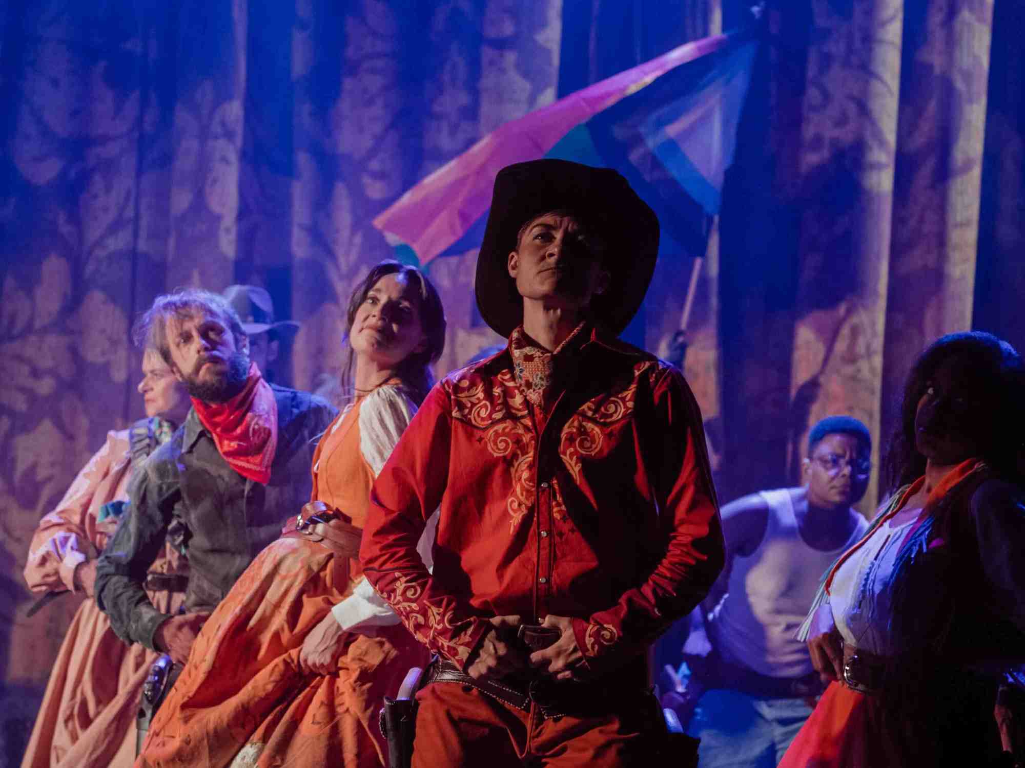 As a band of musicians playing on stage welcome the audience into the Reginald Theatre at the Seymour Centre, the opening of Cowbois evokes a very similar feeling to many a musical past and present in Sydney’s musical theatre scene. What has come to be associated with Once and Calamity Jane is back for this production and it actually creates quite a warming and inclusive feel, really drawing the audience in with musicians on stage even as they walk into the theatre. This is very much in keeping with the themes of the production which is premised not only on inclusivity but also on telling stories that are rarely told in theatre. Rather than casting non-binary actors into cisgendered roles, this is a production primarily concerned with telling the stories of non-binary individuals, which highlights the importance of this work and its place in the theatre landscape.