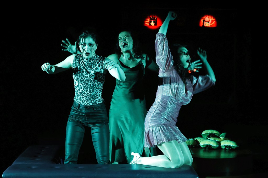 The show is set in a karaoke bar where Mandy, played by Tong herself, and her boyfriend Xavier (Zac Boulton) have unsuccessfully attempted to celebrate Mandy’s 38th birthday. Mandy wants to pretend that her birthday is not happening, since it marks the year both her grandmother and her mother committed suicide. The play then morphs into a ghost story when the ghosts of Mandy’s mother (Seong Hui Xuan) and grandmother (Kimie Tsukakoshi) enter to provide her with some advice on how to manage her failing karaoke bar. What follows is a song-filled and slightly Machiavellian night, which reveals all of Mandy’s insecurities and trauma as she comes to terms with the lives and loss of her mother and grandmother.