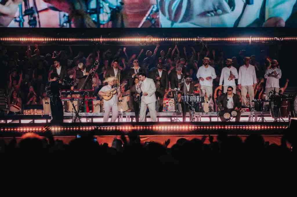 His performance of “Weltita” with Chuwi was an early highlight before the lights went down and the crowd was up again for “Baile Inolvidable” and “NuevaYol”. When on the main stage, it was also striking how strong the cinematography supporting the show was as it felt like the audience were extras in a movie, which is a rare occurrence for concerts and it added to the very special occasion of the performance. It was clear with the cinematography and the fireworks that filled the air throughout the whole show (as well as the cameras that everyone was given upon entry which flashed throughout the night) that this was a production where no expense was spared and that was something quite special for everyone in the audience. This was not just a concert. This was a cultural phenomenon and a party, where the message was wholeheartedly about love and not division.